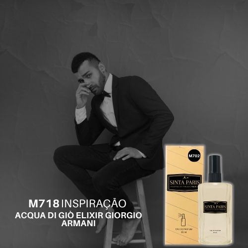 O melhor Perfume Contratipo Masculino M718 65ml Inspirado em ACQUA DI GIÒ ELIXIR GIORGIO ARMANI da Sinta Paris Perfumes é produzido com essência Premium de Alta Qualidade, com a mesma formulação do importado referenciado.